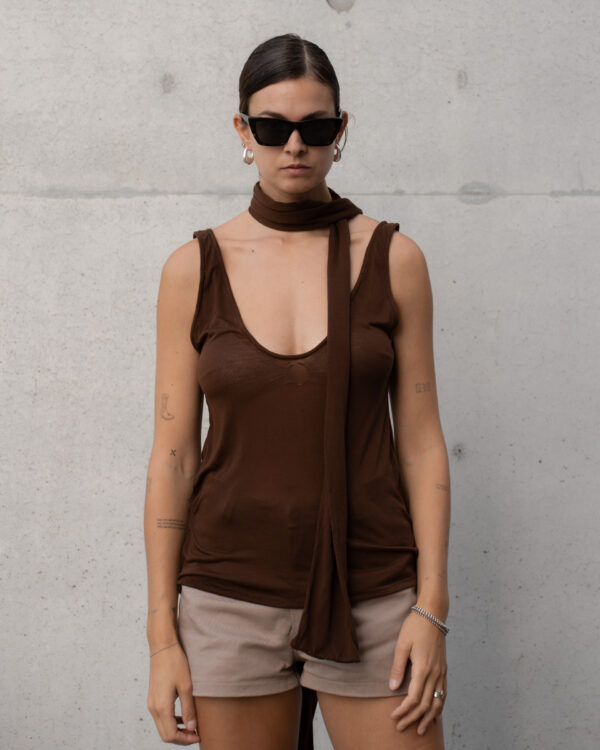 - mit dünnem Schal, der vielfältig getragen werden kann